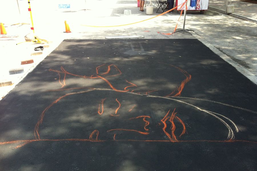 No stencil, no print out and no grid line. Total free-form. Yeah, it may not be a perfect likeness, but choosing this photo to draw made it a ton of fun and helped me gain a bit more peace of mind. A friend/former colleague of mine came by that day with her family and I put her daughter to work. I'm pretty sure she'll be coming back next year.