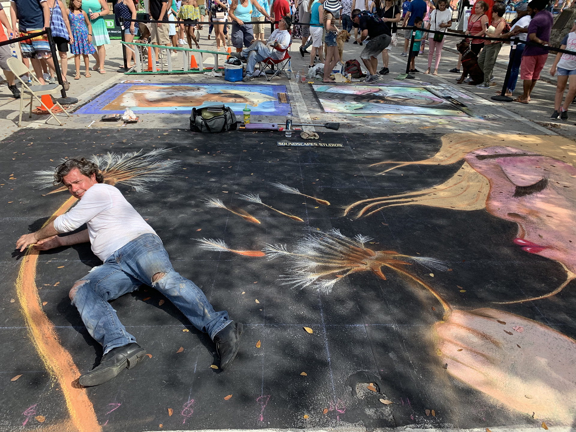 CELEBRATING WITH WHAT WE DO HAVE ... The annual Street Painting Festival has almost always brought a feeling of respite just about every year. This particular year (2019) my old friend Jew got to help me with a documentary on the event that I've wanted to do for a very long time now AND my OLDER brother came to visit for the very first time. It was special. It was less about the art and just appreciating the moment with loved ones. As you can see, I didn't even finish it before the rain.