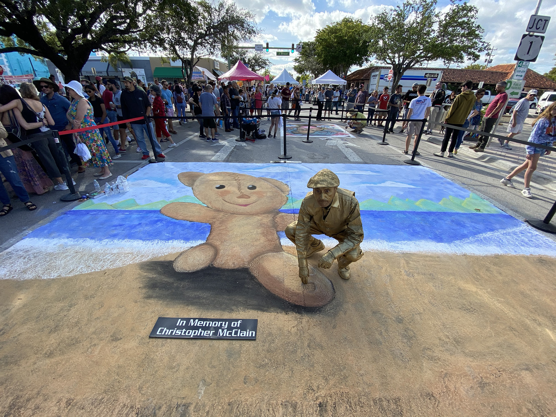 What feeling soul would not have wished the festival a day or two longer, would not crave more art in our monochromatic lives? And what human with the tiniest erg of empathy would share no pain with an artist who, after spending two days on hands and knees creating their chalk masterpiece, witnessed their effort smudged off the roadway by the first automobiles to travel the unblocked streets, automobiles whose eraser tires announced the victory of the humdrum and monotonous over the festival’s eruption of the humane?