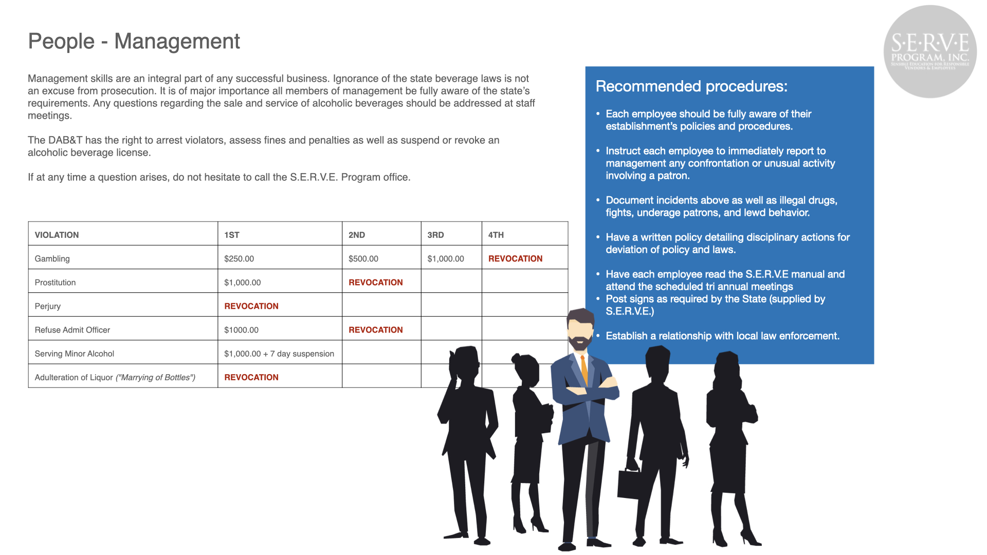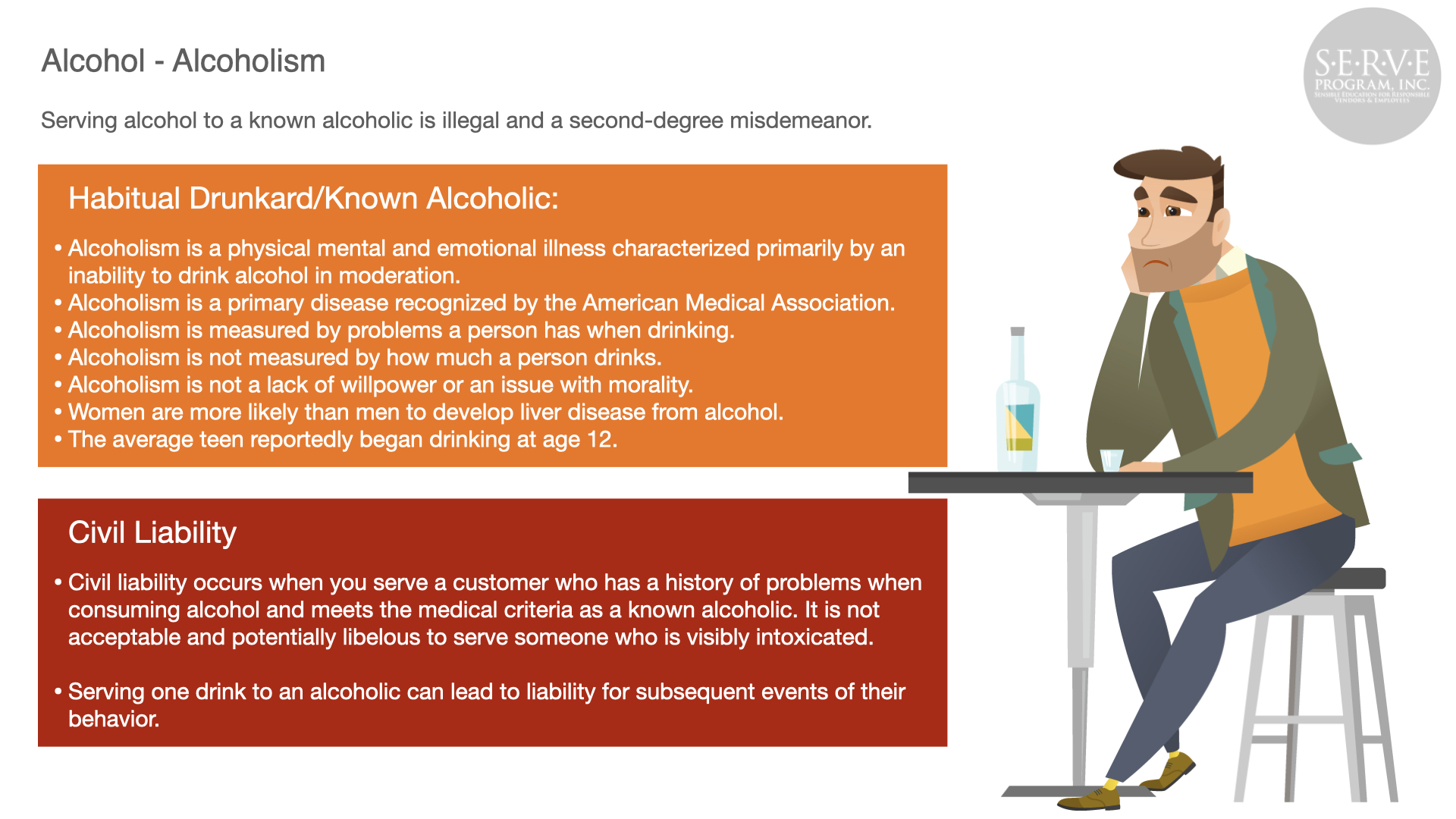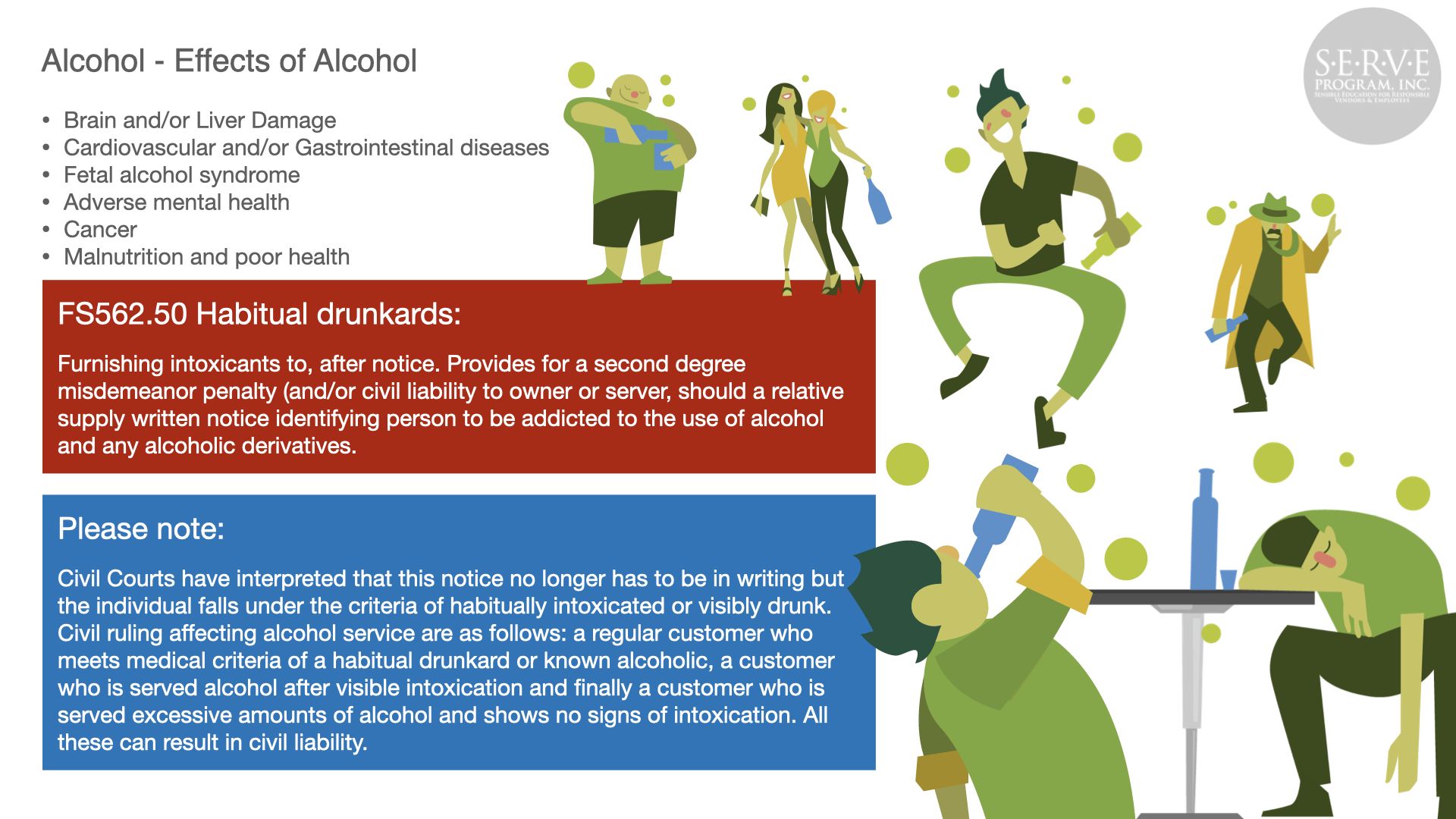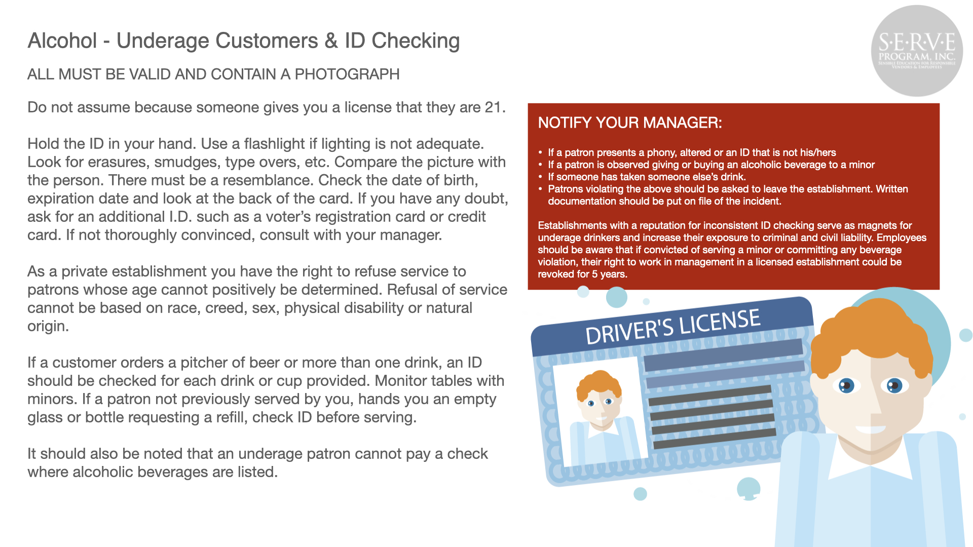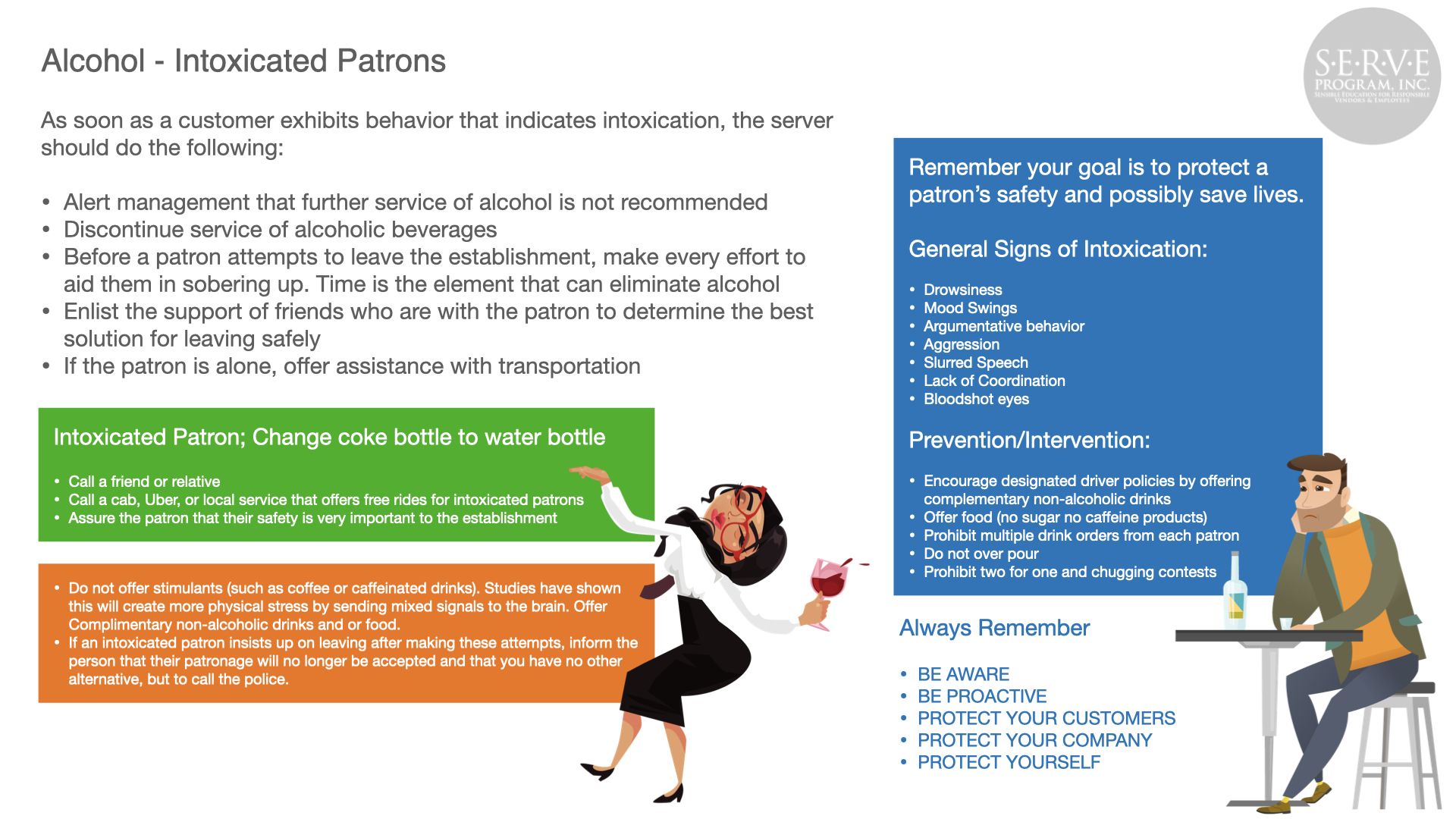 Alcohol abuse can have a devastating effect to the public, your business, and employees. Serving responsibly produces safer roads and neighborhoods and a more profitable business.