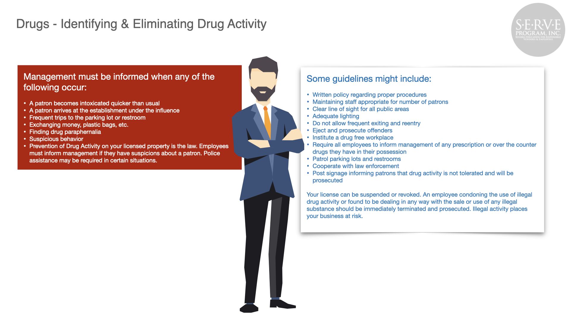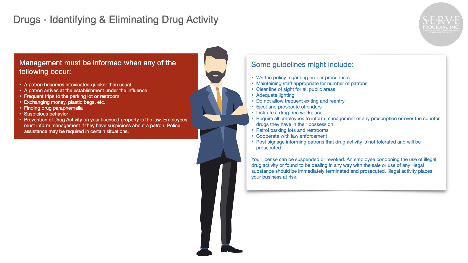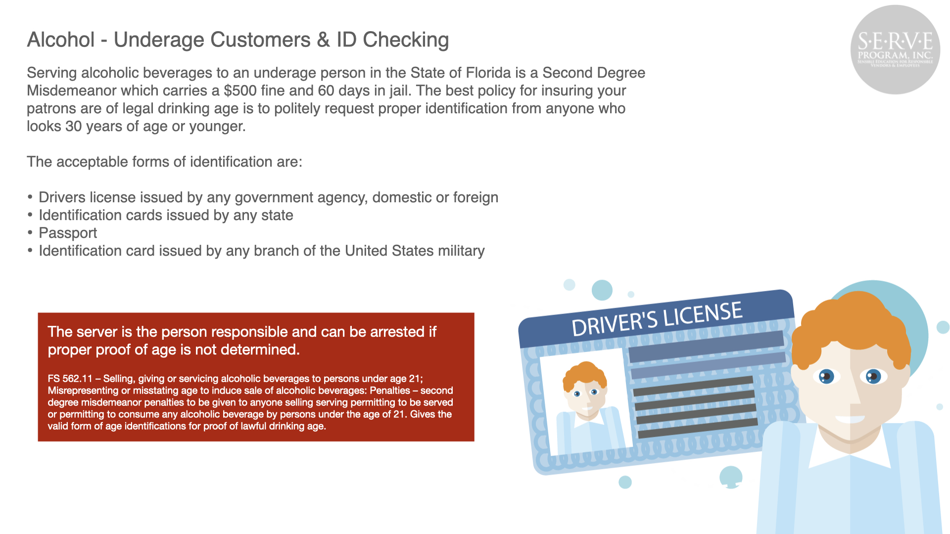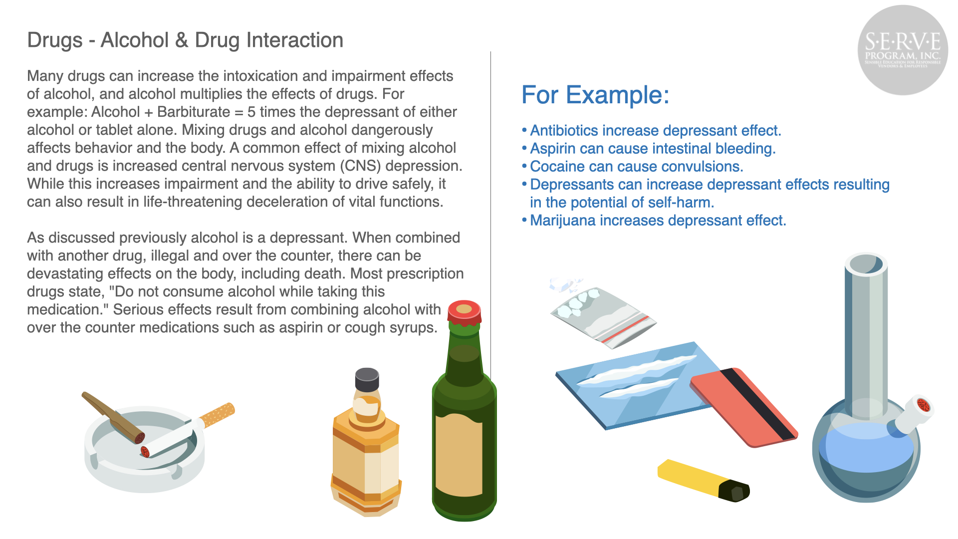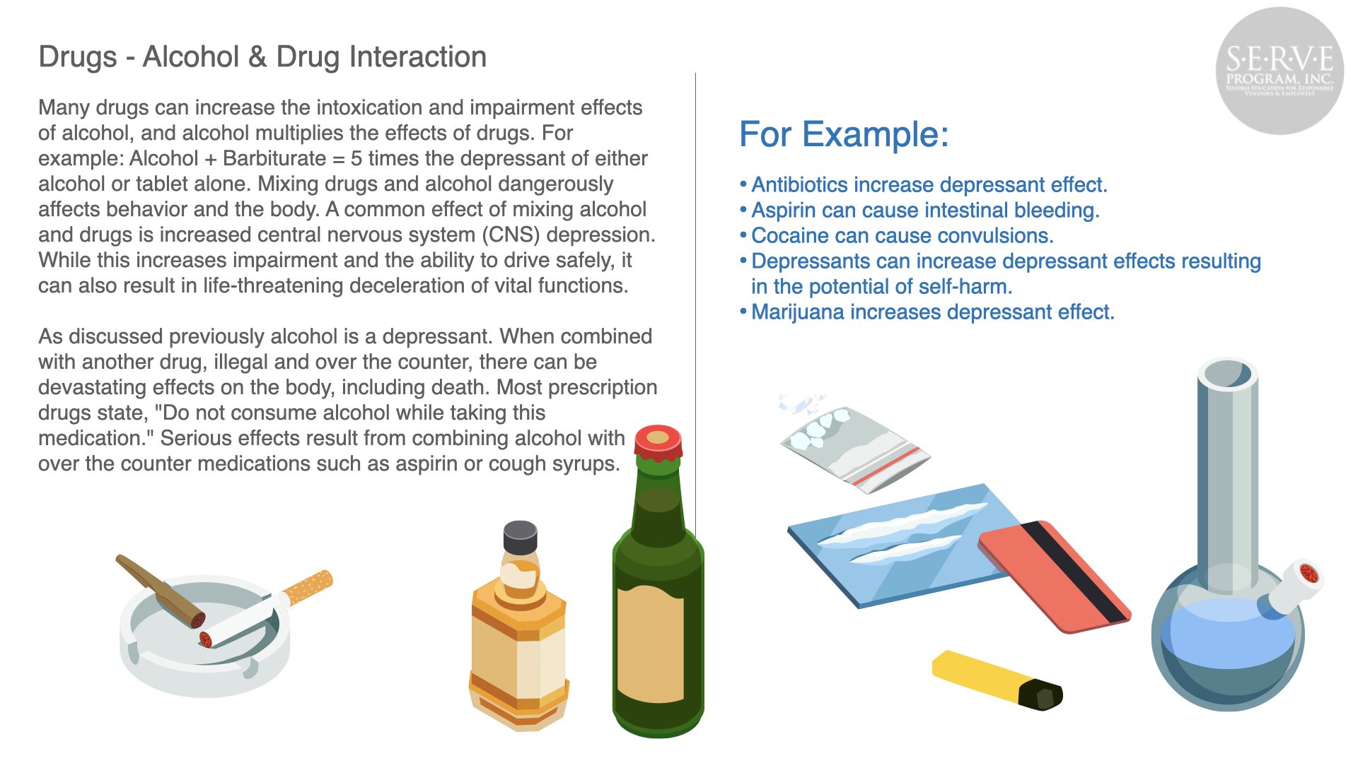 Alcohol abuse can have a devastating effect to the public, your business, and employees. Serving responsibly produces safer roads and neighborhoods and a more profitable business.