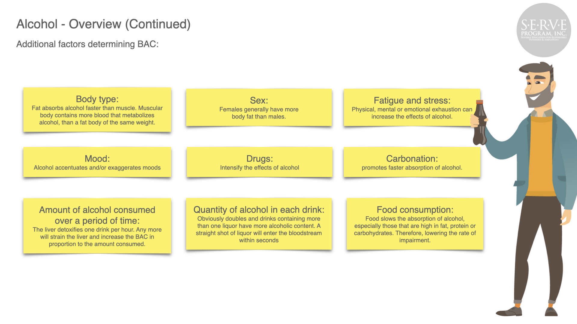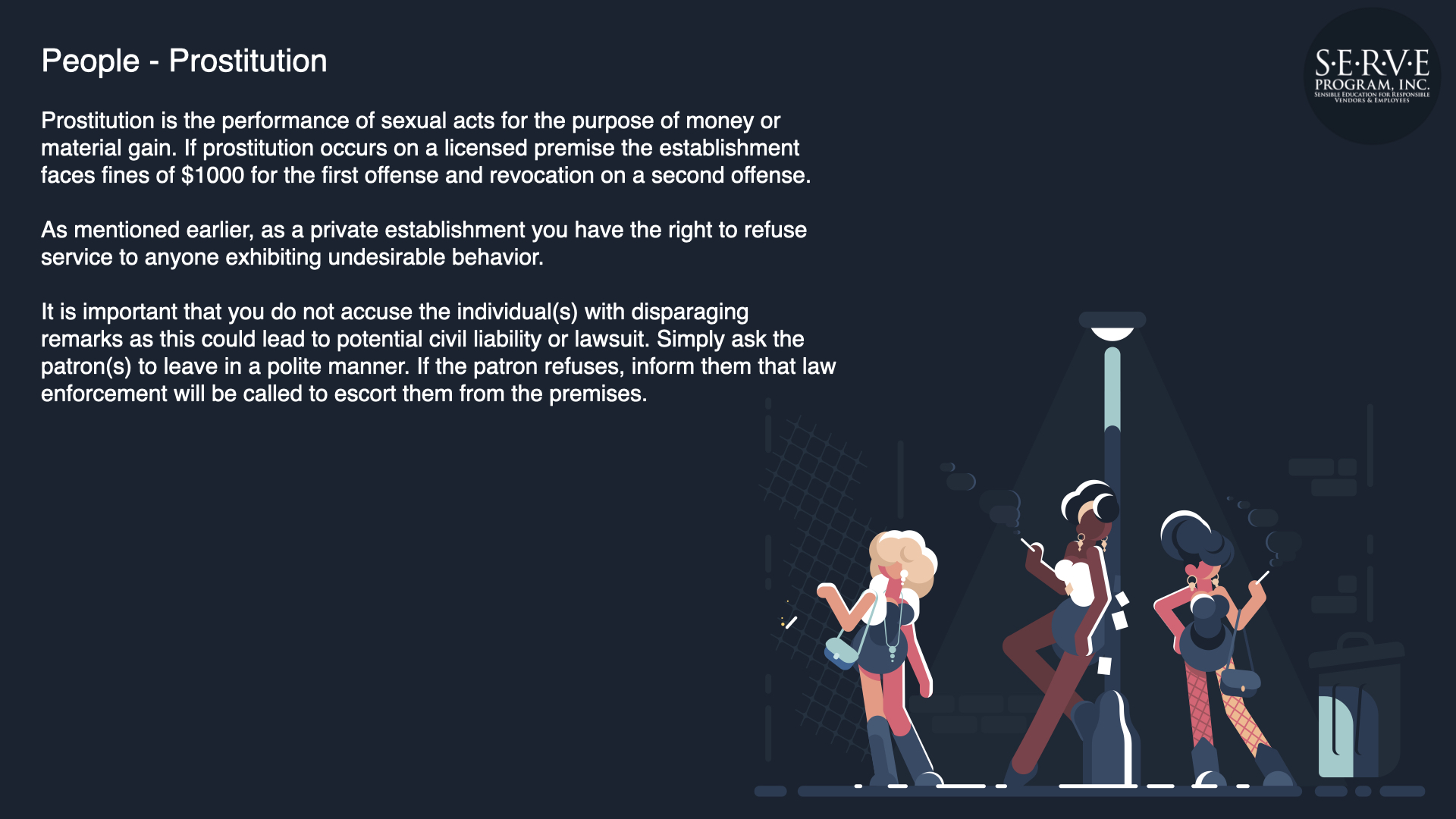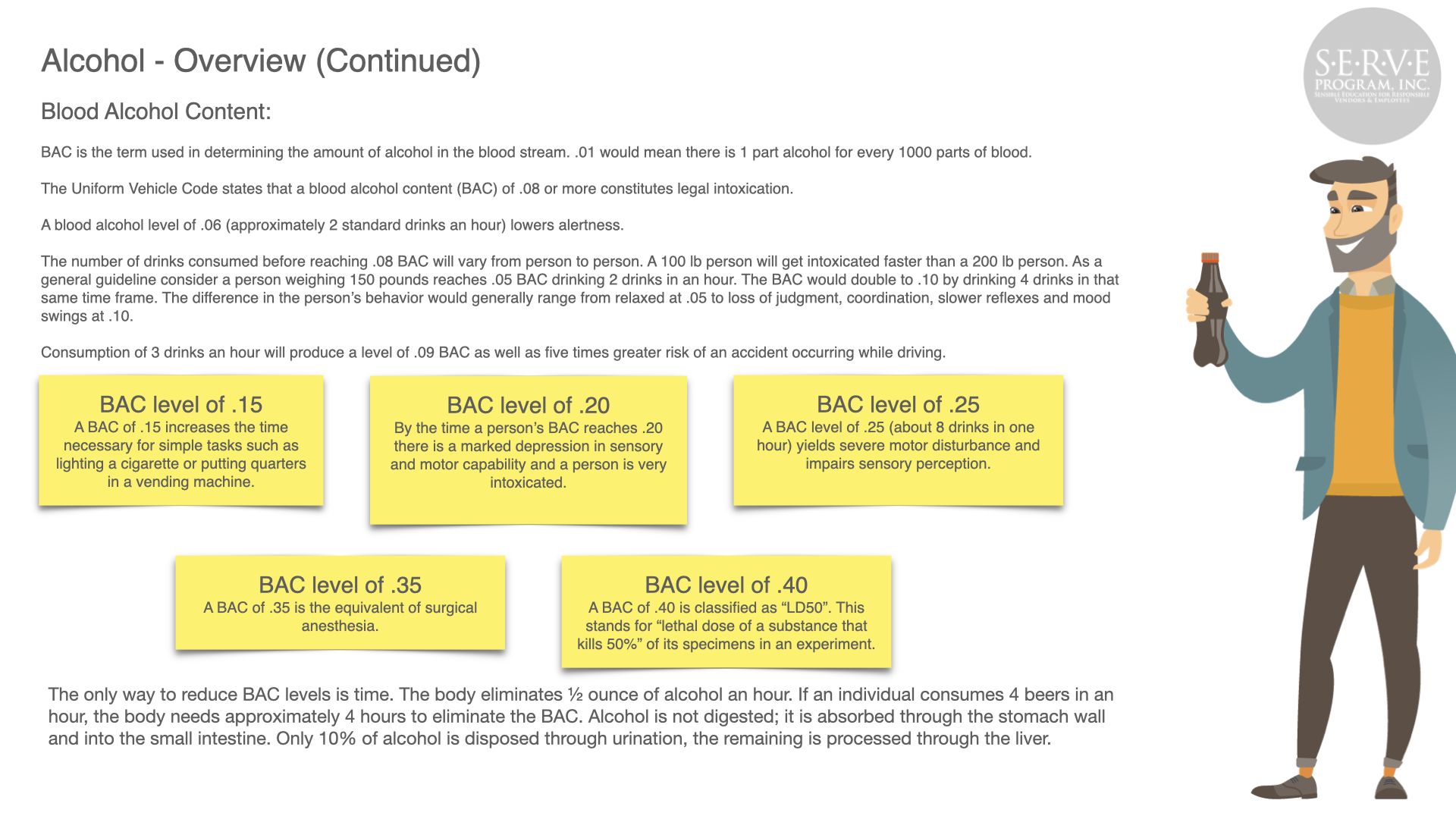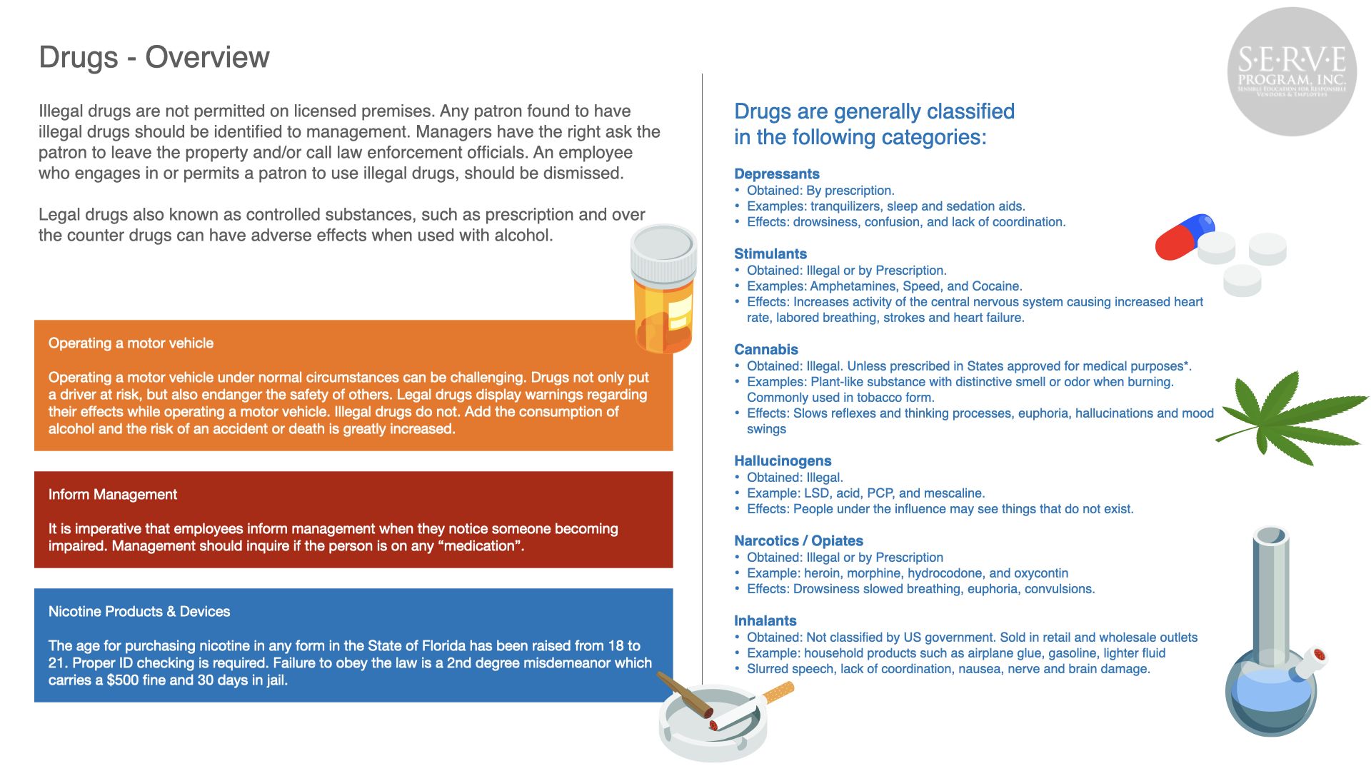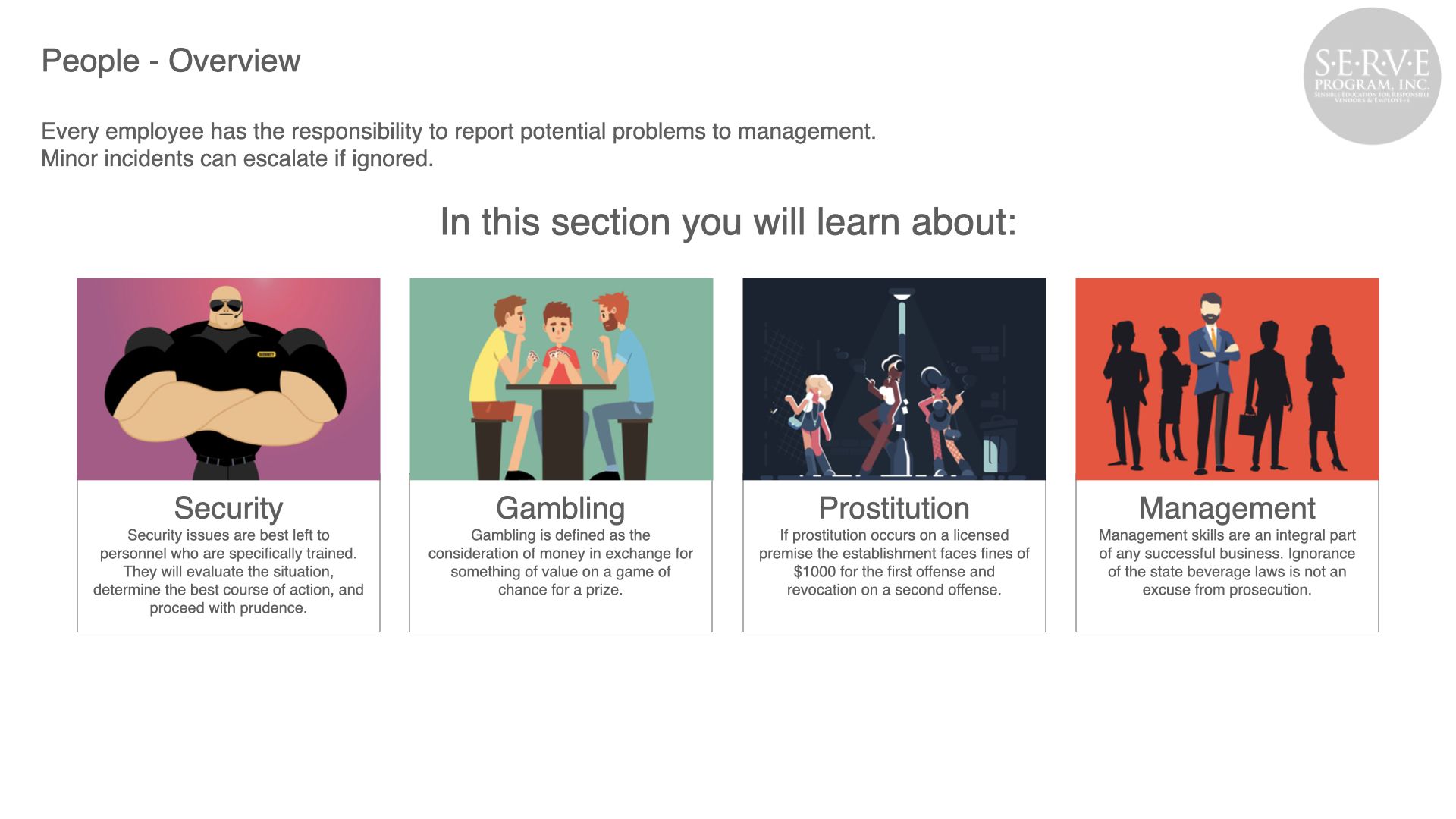 Alcohol abuse can have a devastating effect to the public, your business, and employees. Serving responsibly produces safer roads and neighborhoods and a more profitable business.