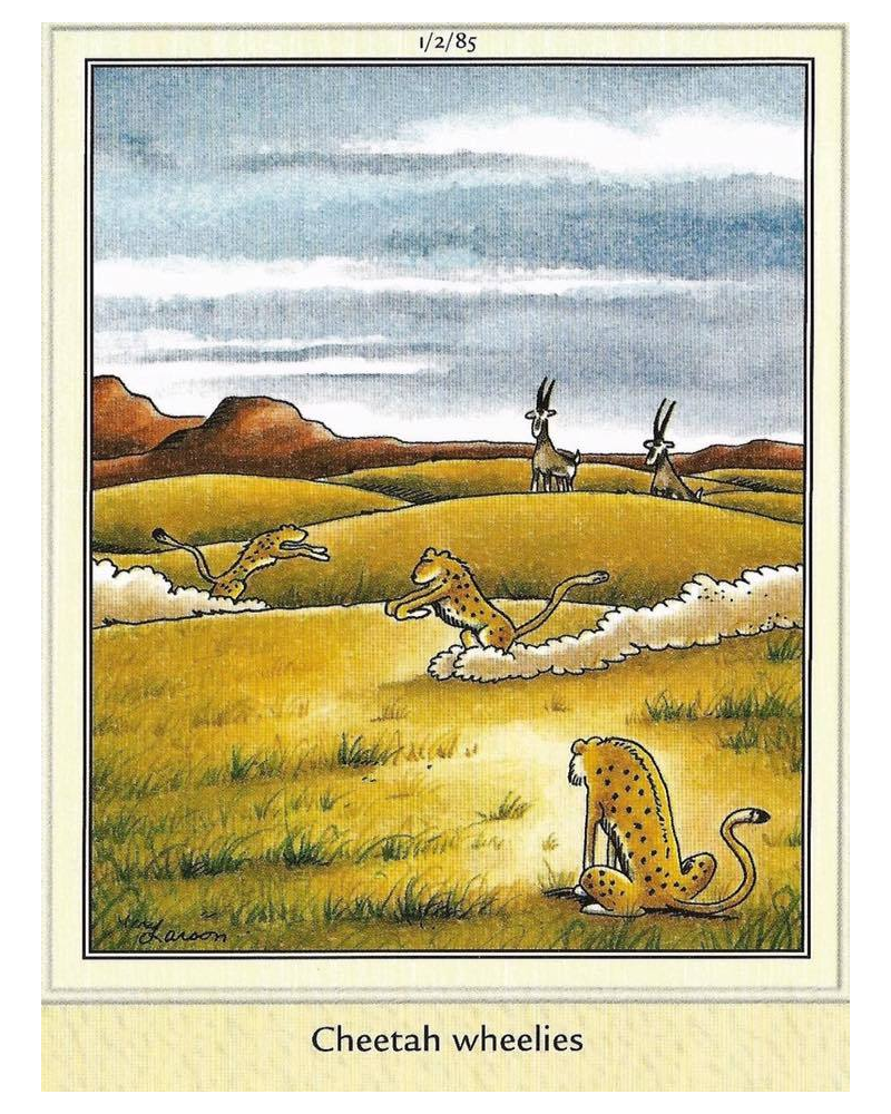 The band chose their name from a "The Far Side" illustration by artist Gary Larson captioned "Cheetah Wheelies".